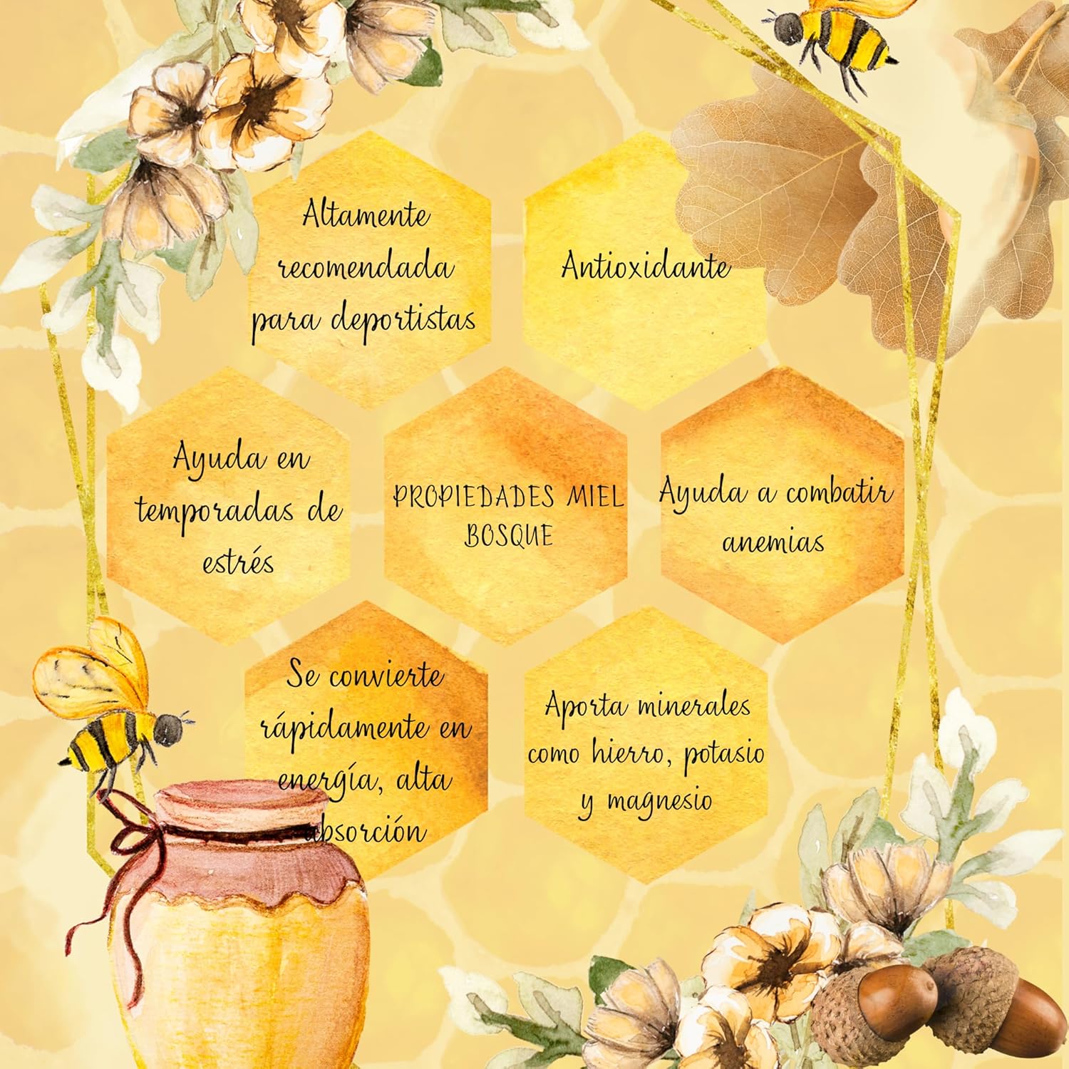 Miel de Bosque, Cosecha Agosto 2025, 100% natural y CRUDA (extraida y embasada en frio). Origen 100%, España, Zamora, Miel Artesanal sin Procesar ni Filtrar, Cosecha Agosto 2025